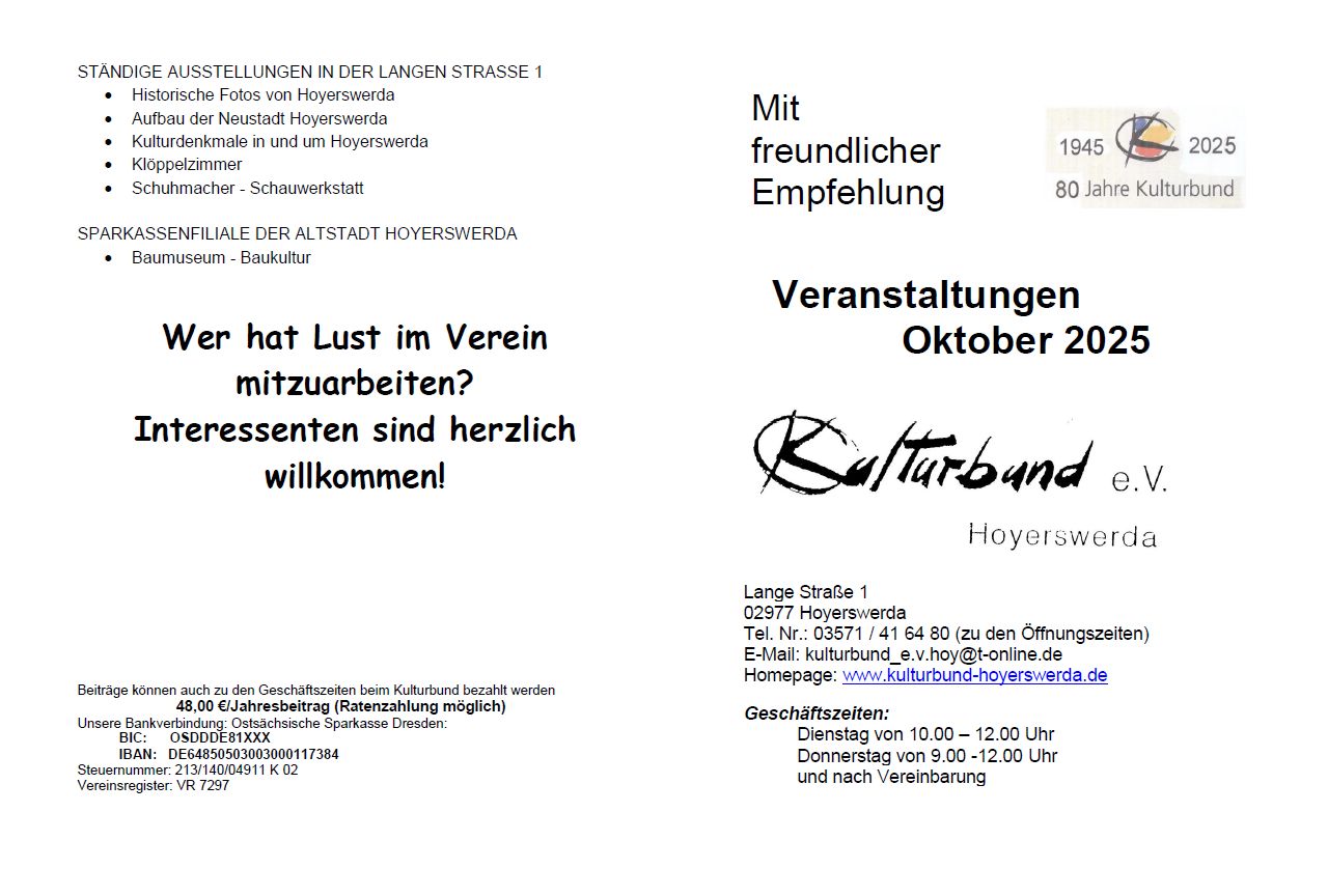 | Jubiläum am 8. August 2025: 80 Jahre Kulturbund, Lange Straße 1 | ||